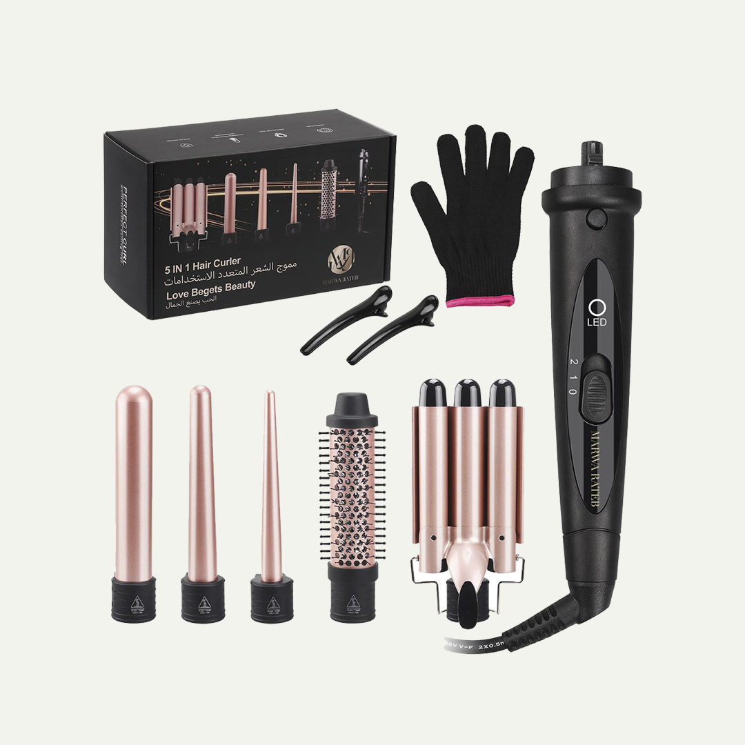 ارفع مستوى تصفيف شعرك مع مجموعة مكواة الشعر 5 في 1 Love Begets Beauty. أنشئي أنماطًا مذهلة بسهولة وثقة!